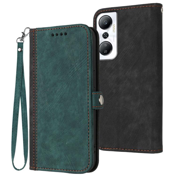 Funda de Cuero para Infinix Hot 20 4G con Correa de Mano y Hebilla Doble Plegable (Verde Oscuro)