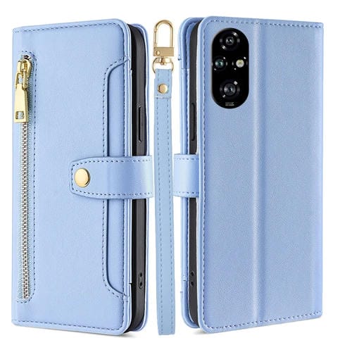 Funda de Cuero para Honor 200 Pro 5G con Cremallera y Textura de Oveja (Azul)