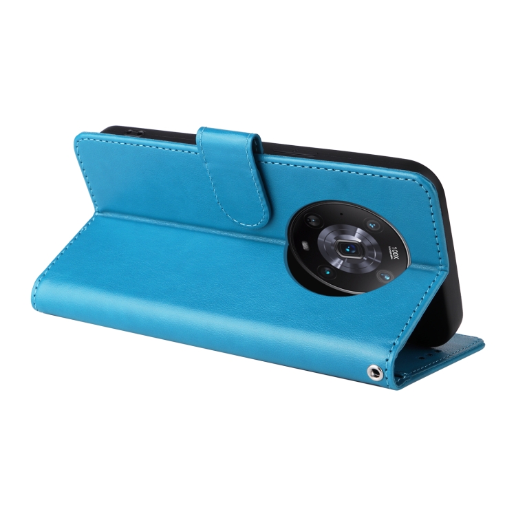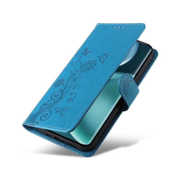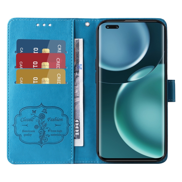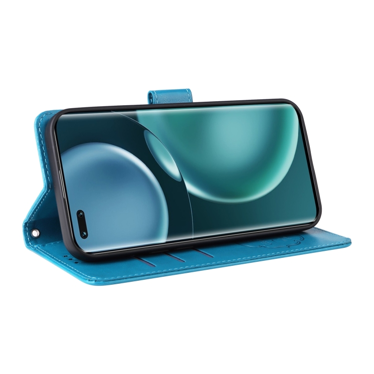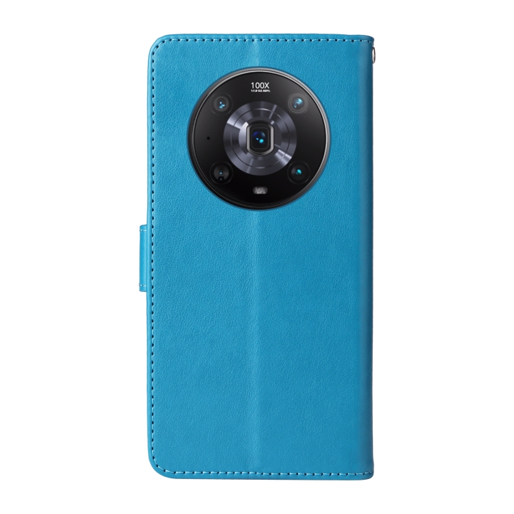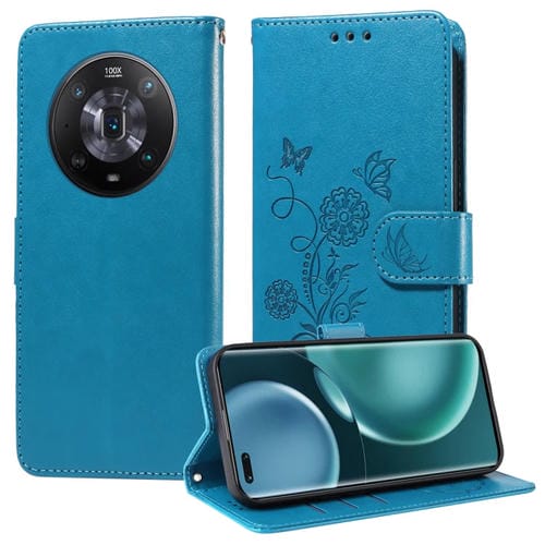 Funda de Cuero para Honor Magic4 con Diseño de Mariposas y Flores en Relieve (Azul)