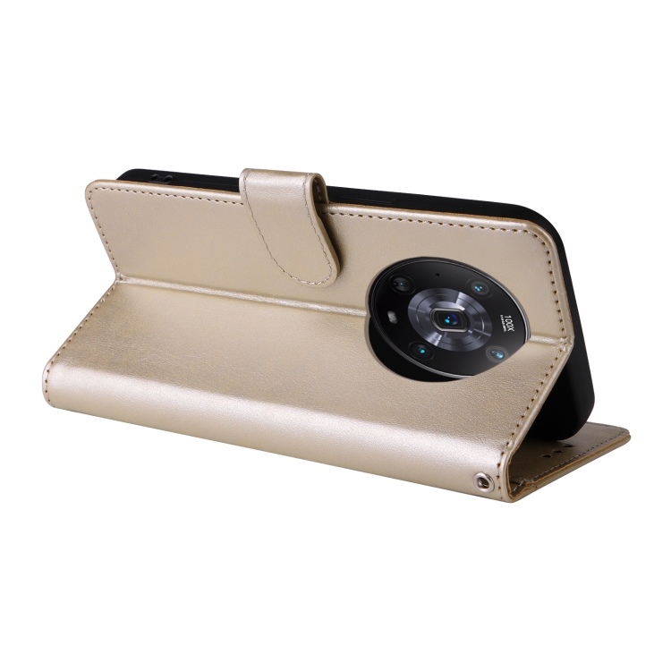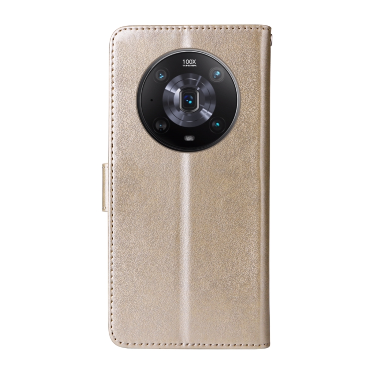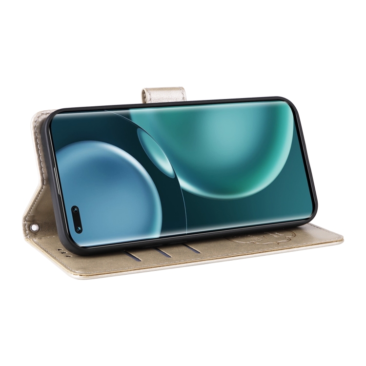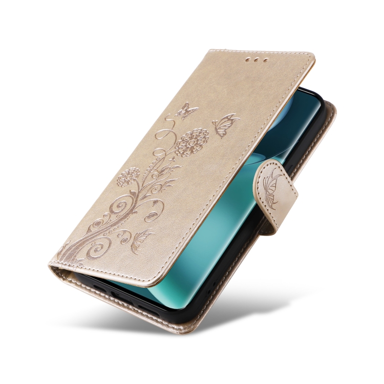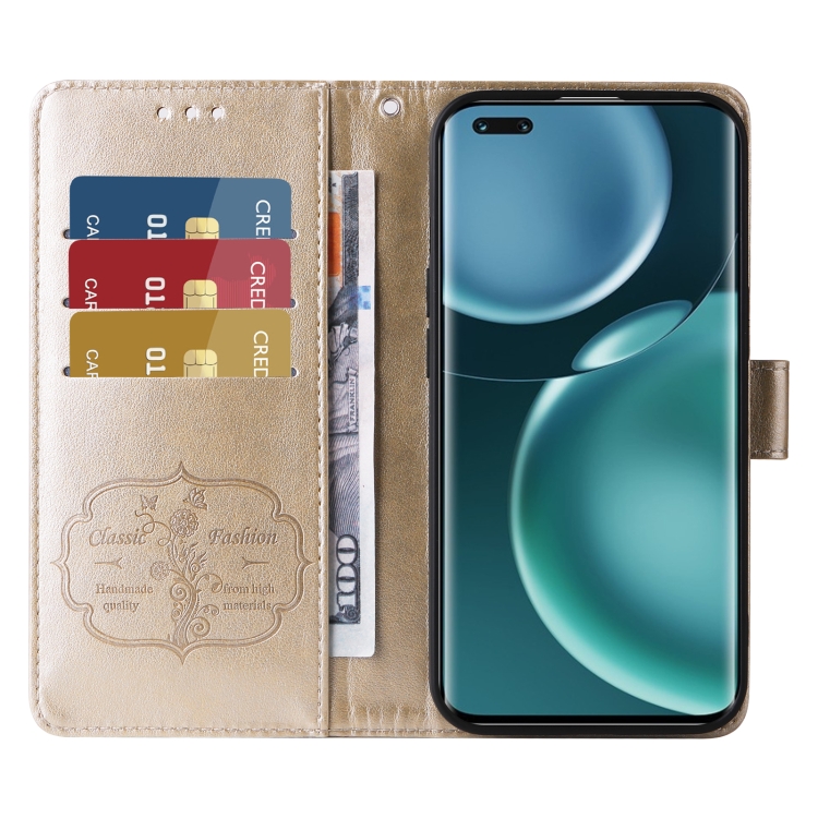 Funda de Cuero para Honor Magic4 con Diseño de Mariposas y Flores en Relieve (Dorada)