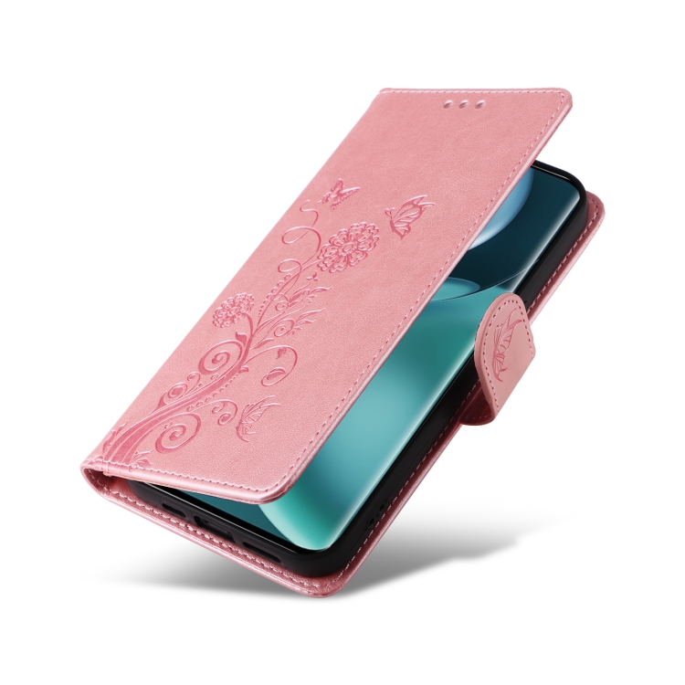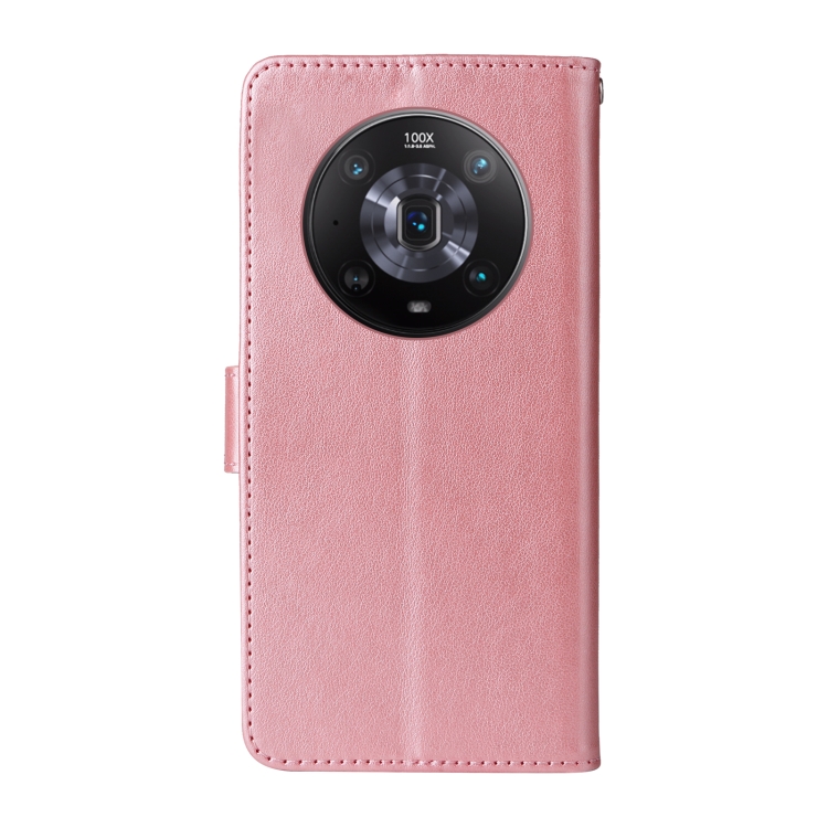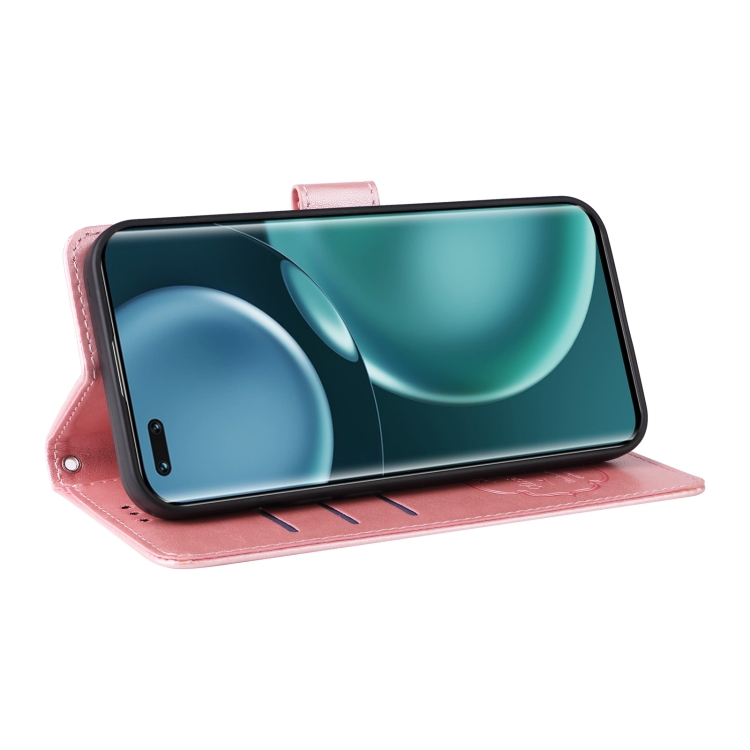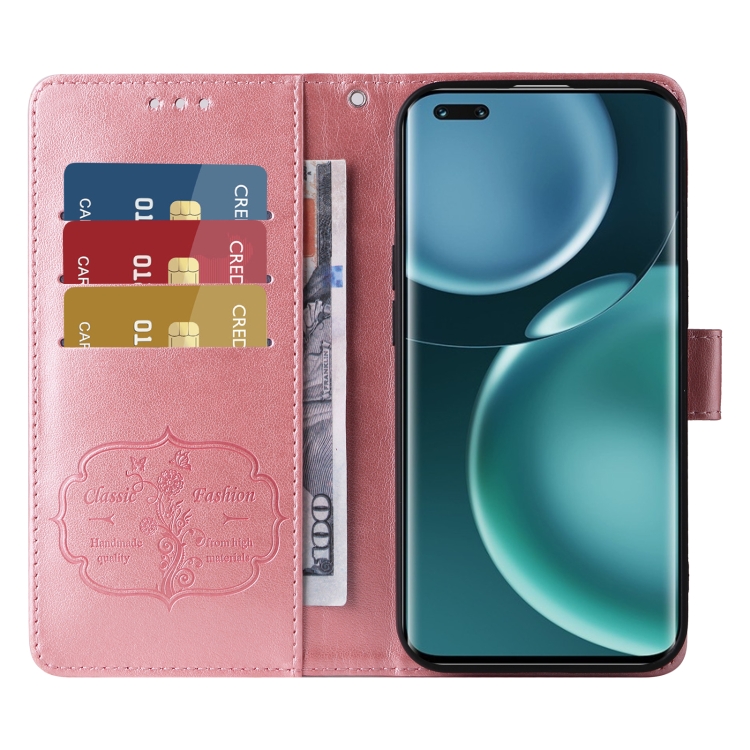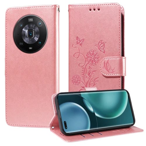 Funda Cuero para Honor Magic4 Diseño Mariposas y Flores en Relieve (Oro Rosa)