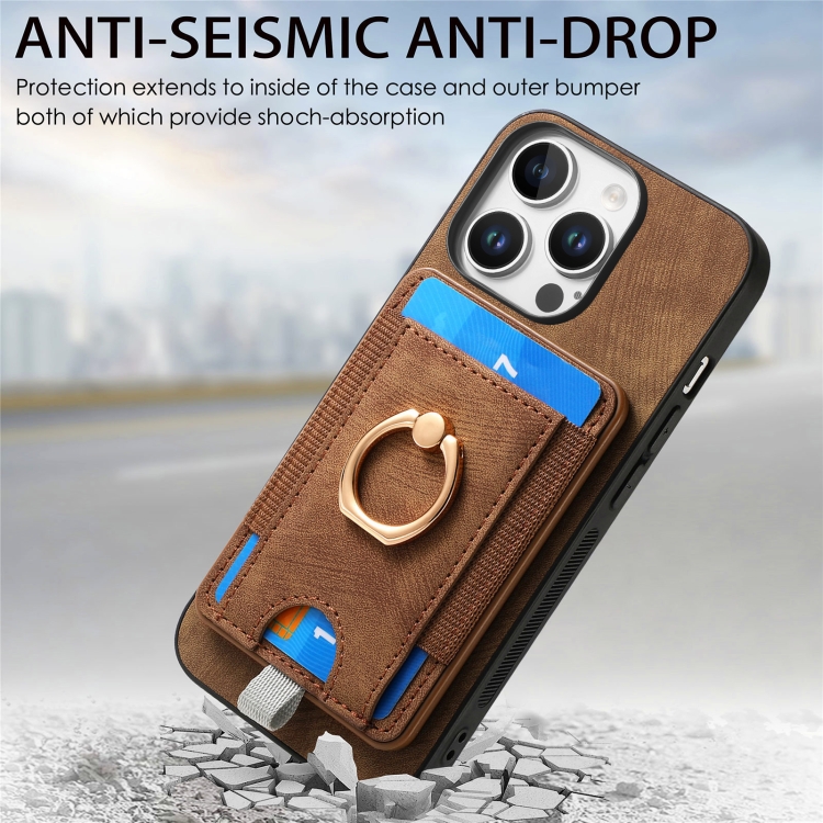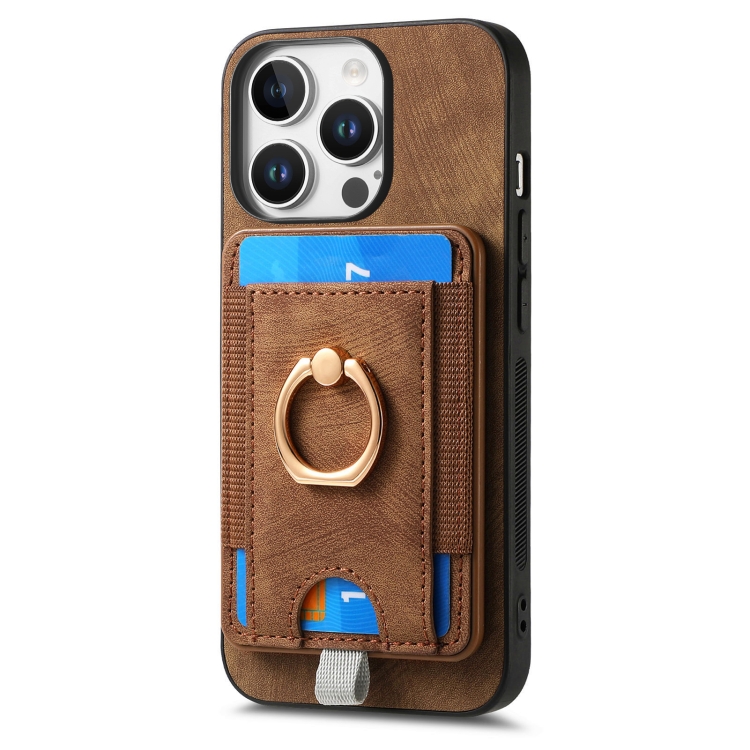 Funda de Cuero para Teléfono con Tarjetero Magnético Divisible Retro para iPhone 16 Pro (Marrón)