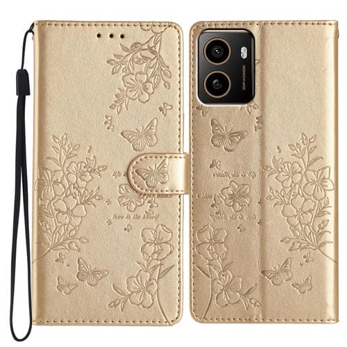 Funda de Cuero para Teléfono Hmd Pulse+ con Diseño de Mariposas y Flores (Dorada)