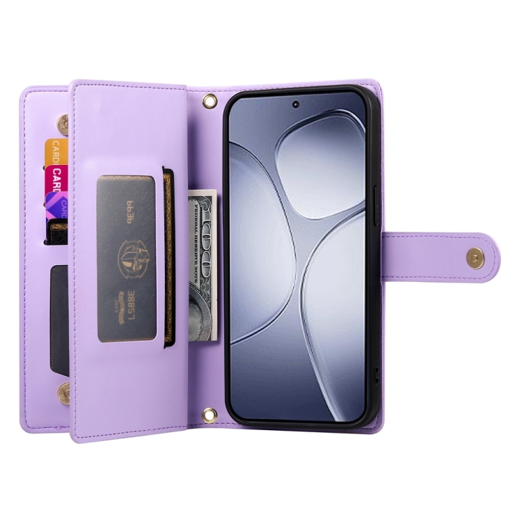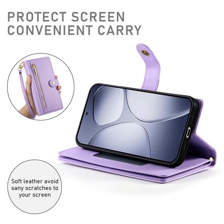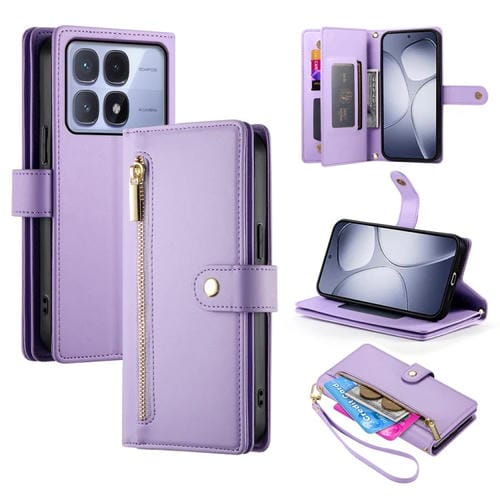 Funda de Cuero para Teléfono Redmi K70 Ultra con Nueve Ranuras para Tarjetas y Cremallera (Morado)