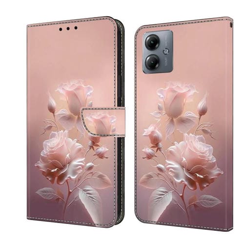 Funda de Cuero Pintada a Mano para Motorola Moto G14 (Flores de Cerámica)
