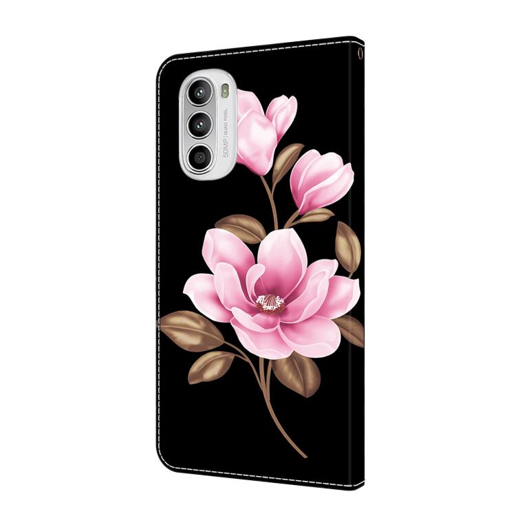 Funda de Cuero Pintada a Mano para Motorola Moto G52 (Flores Negras)