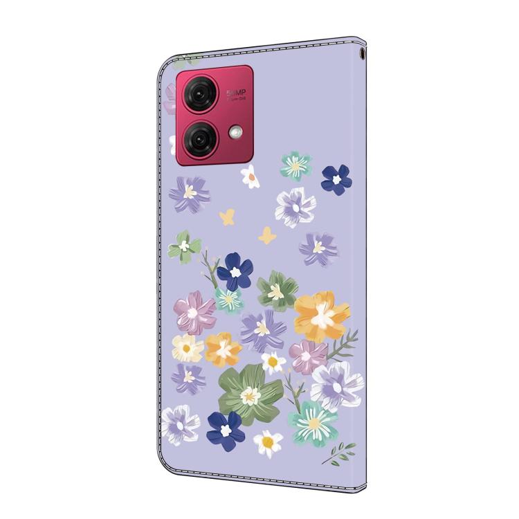 Funda de Cuero Pintada a Mano Motorola Moto G84 Protección Floral (Morado)