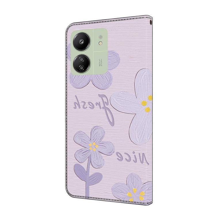 Funda de Cuero Pintada a Mano para Redmi 13C (Flores de Color Morado Oscuro)