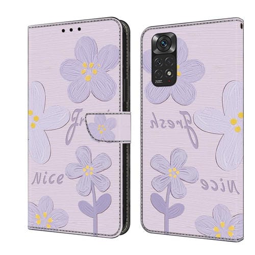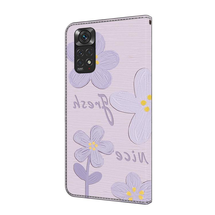Funda de Cuero Pintada a Mano para Redmi Note 11/11S (Flores de Color Morado Oscuro)