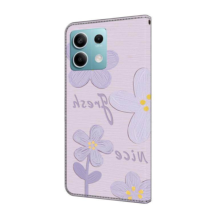 Funda de Cuero Pintada a Mano para Redmi Note 13 5G (Flores de Color Morado Oscuro)