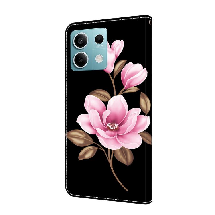 Funda de Cuero Pintada a Mano para Redmi Note 13 5G (Flores Negras)