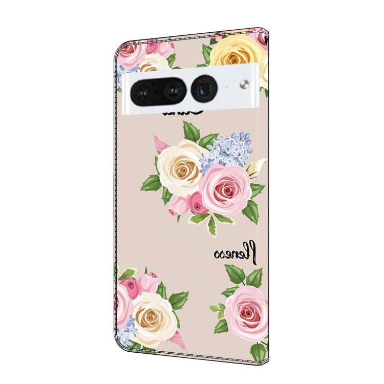 Funda de Cuero Pintada a Mano para Google Pixel 7 Pro con Flores de Colores