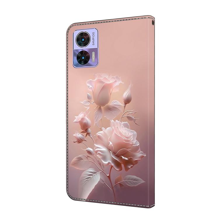 Funda de Cuero Pintada a Mano Motorola Edge 30 Neo con Flores de Cerámica