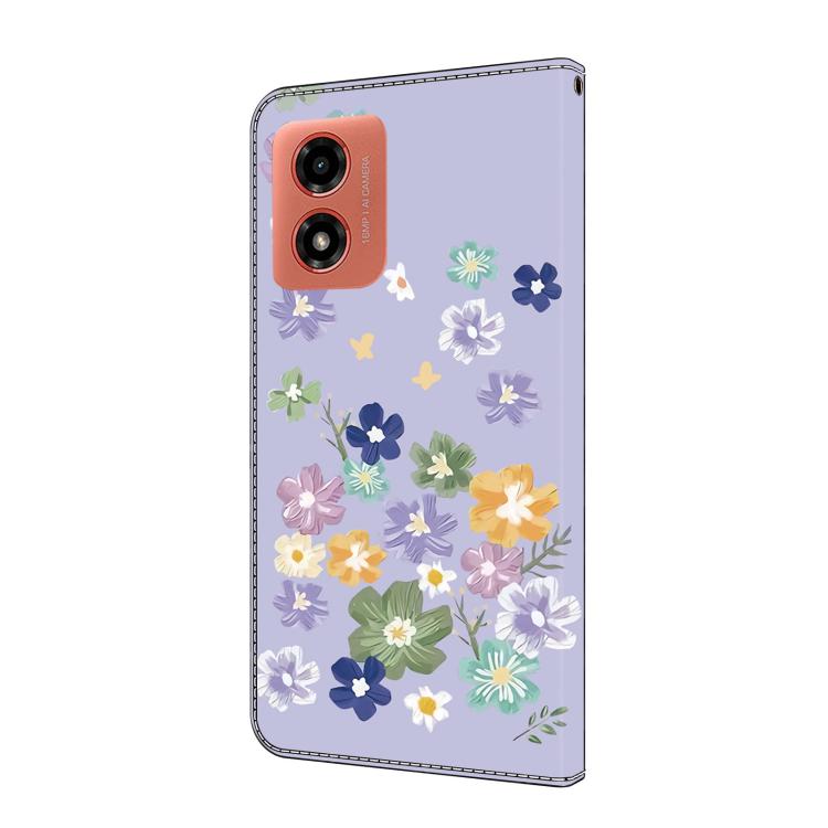 Funda de Cuero Pintada a Mano Motorola Moto G04 Protección Floral (Morado)