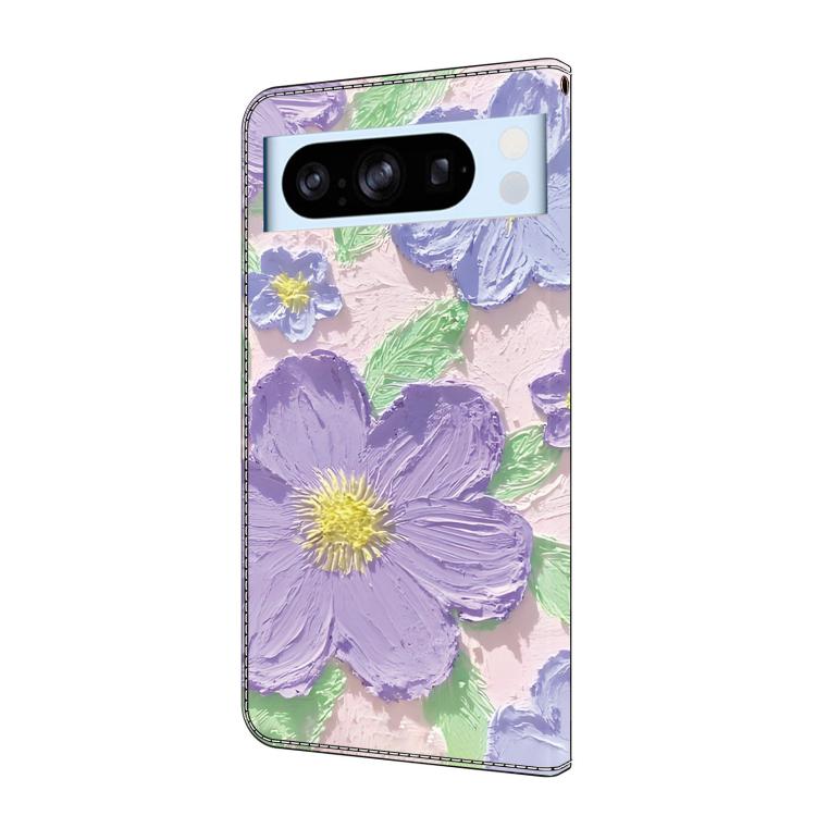 Funda de Cuero Pintada al Óleo para Teléfono Google Pixel 8 Pro (Flores Moradas)