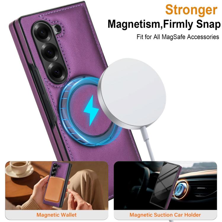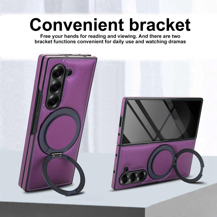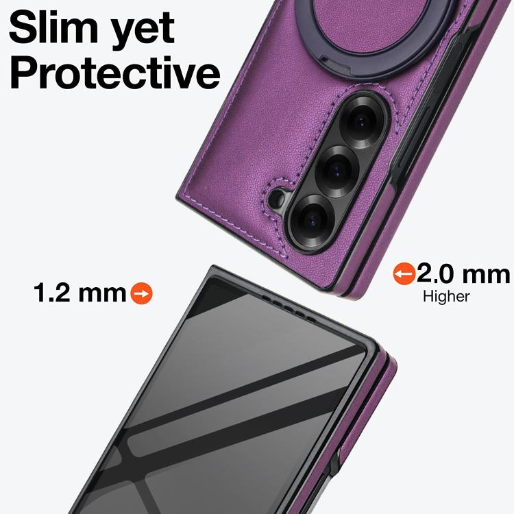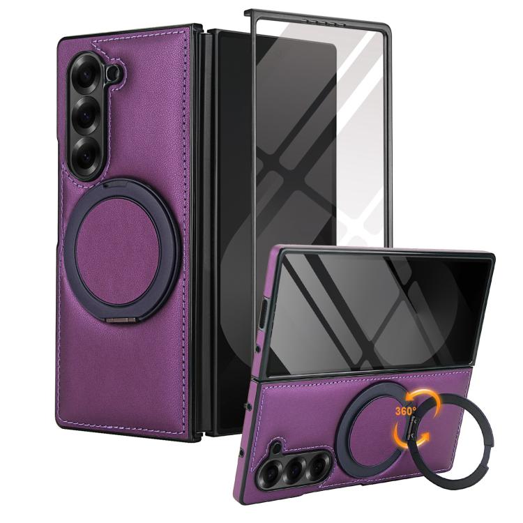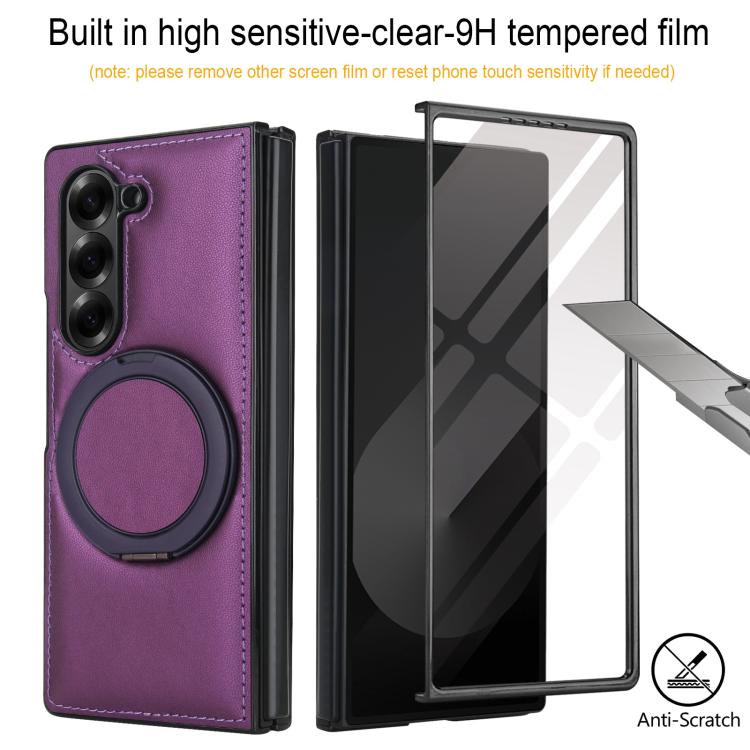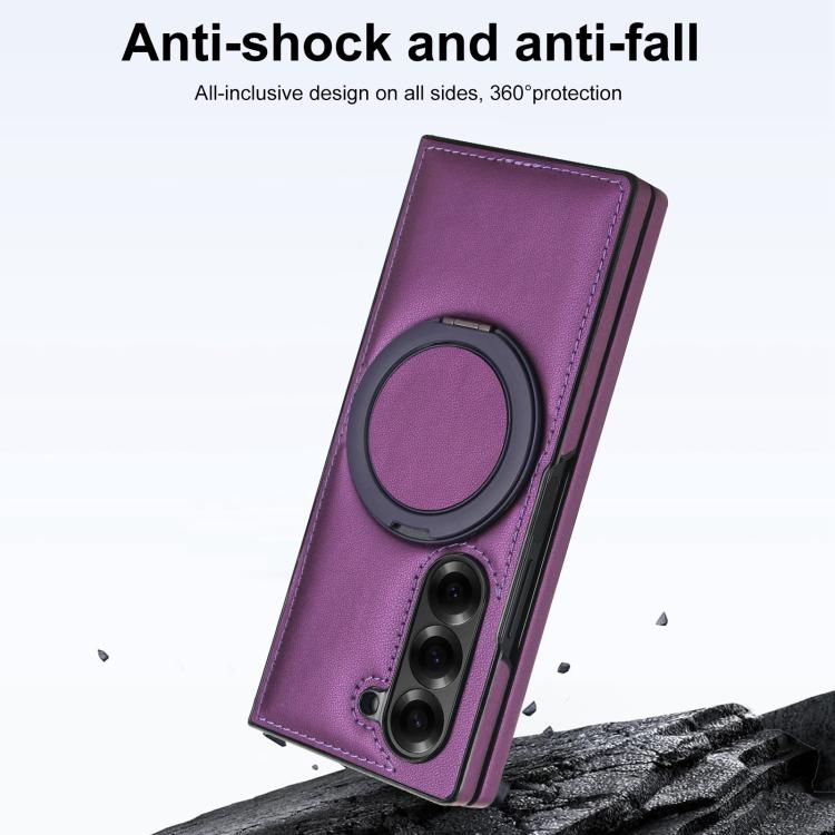 Funda de cuero plegable con soporte giratorio y película MagSafe para Samsung Galaxy Z Fold6 (morado oscuro)