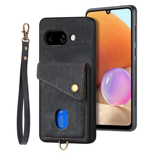 Funda de Cuero Plegable con Tarjetero para Google Pixel 9A con Correa (Negra)