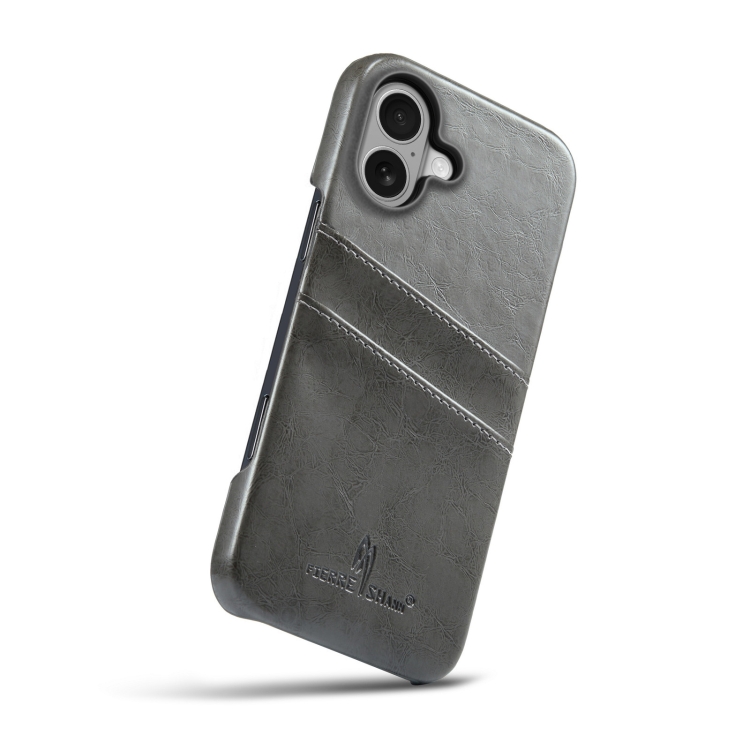Funda de Cuero Pu Fierre Shann para iPhone 16 con Ranuras para Tarjetas y Textura de Cera de Aceite (Gris)