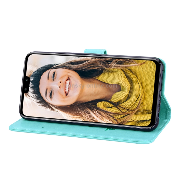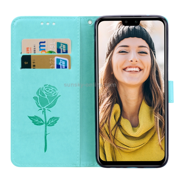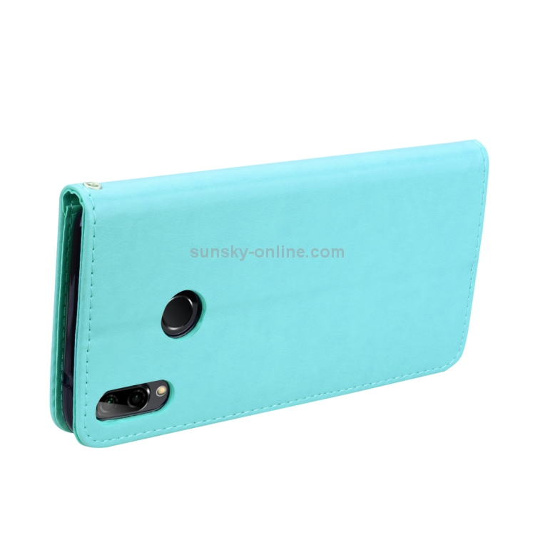Funda Cuero PU con Tapa Horizontal En Relieve para Huawei Y9 (2019) con Soporte Ranuras y Billetera (Verde)