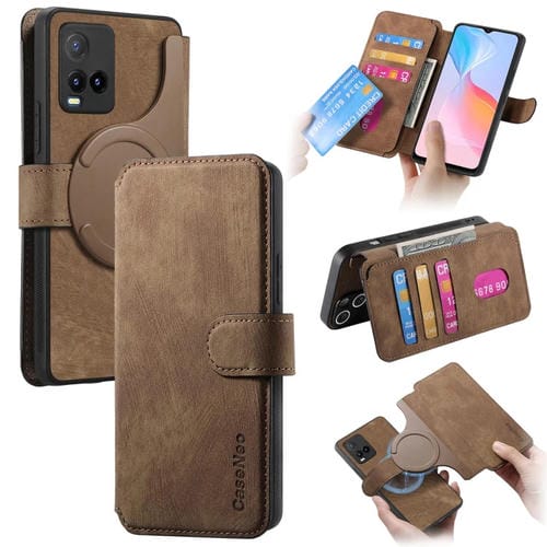 Funda de Cuero Retro Antirrobo con Rfid para Vivo Y21S/Y32/Y21T/Y3T Caseneo Magsafe (Marrón)