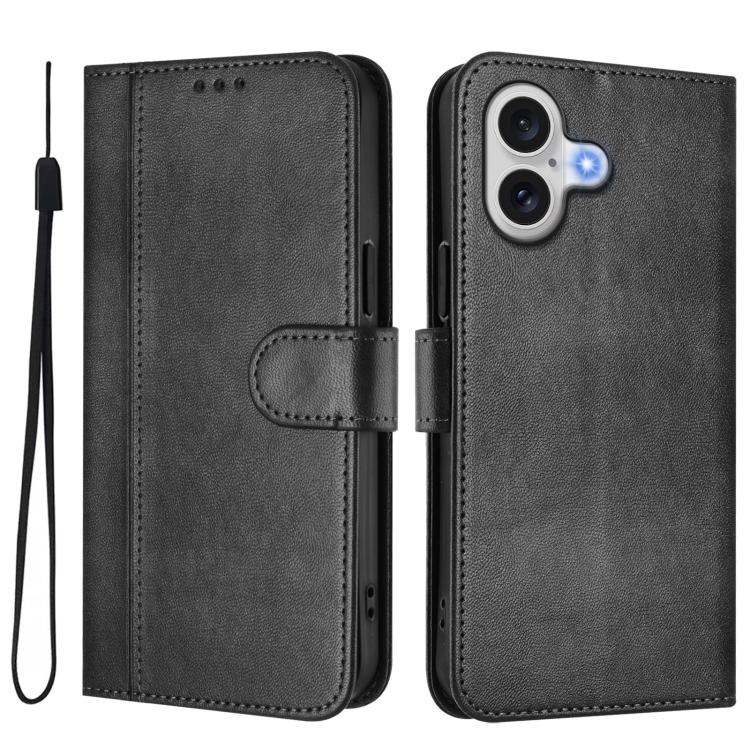 Funda de cuero retro con hebilla y empalme de líneas para iPhone 17 (negra)