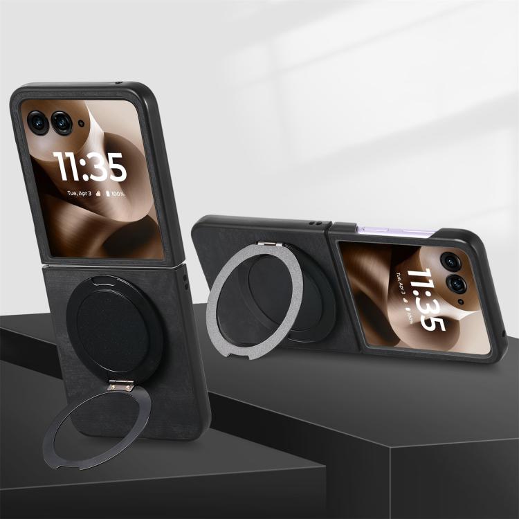 Funda de cuero retro con soporte giratorio para Motorola Moto Razr 40 Ultra (negro)