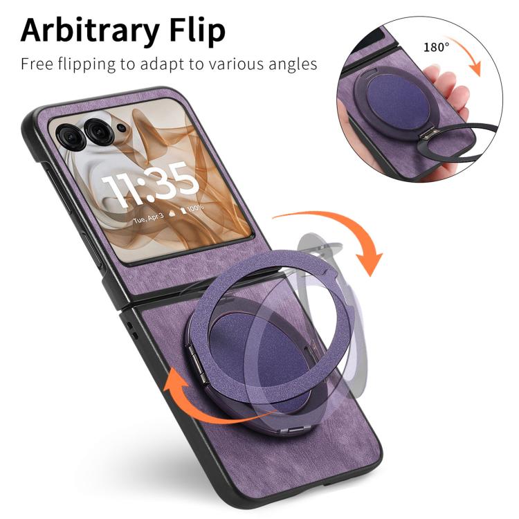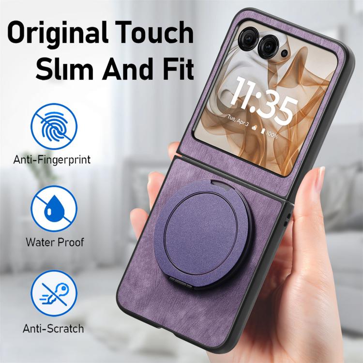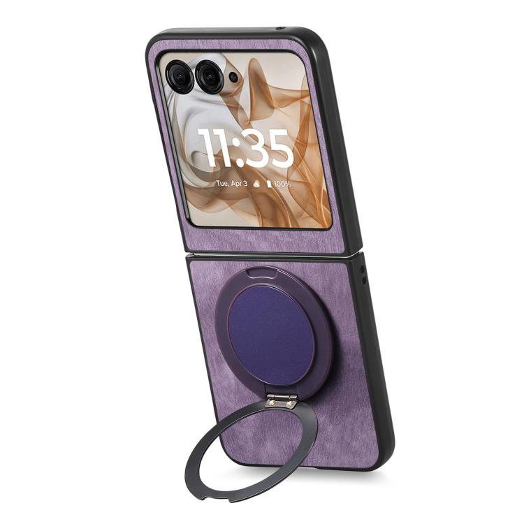 Funda de cuero retro con soporte giratorio para Motorola Moto Razr 50 (morado)