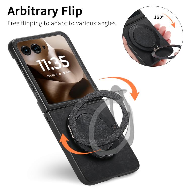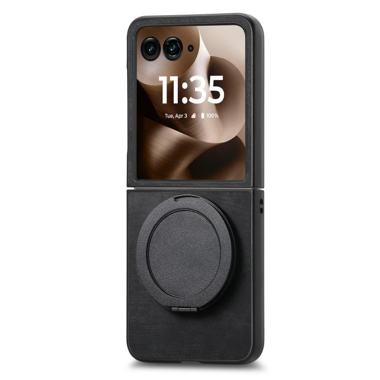 Funda de cuero retro con soporte giratorio para Motorola Moto Razr 50 Ultra (negra)