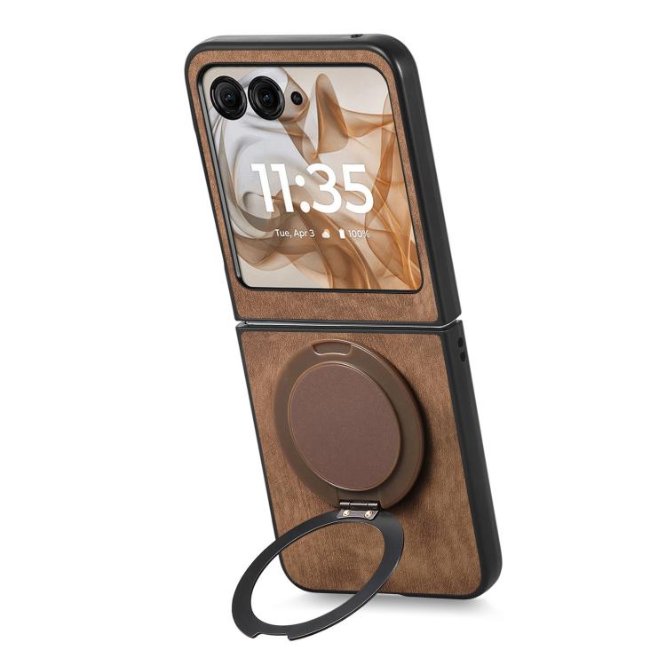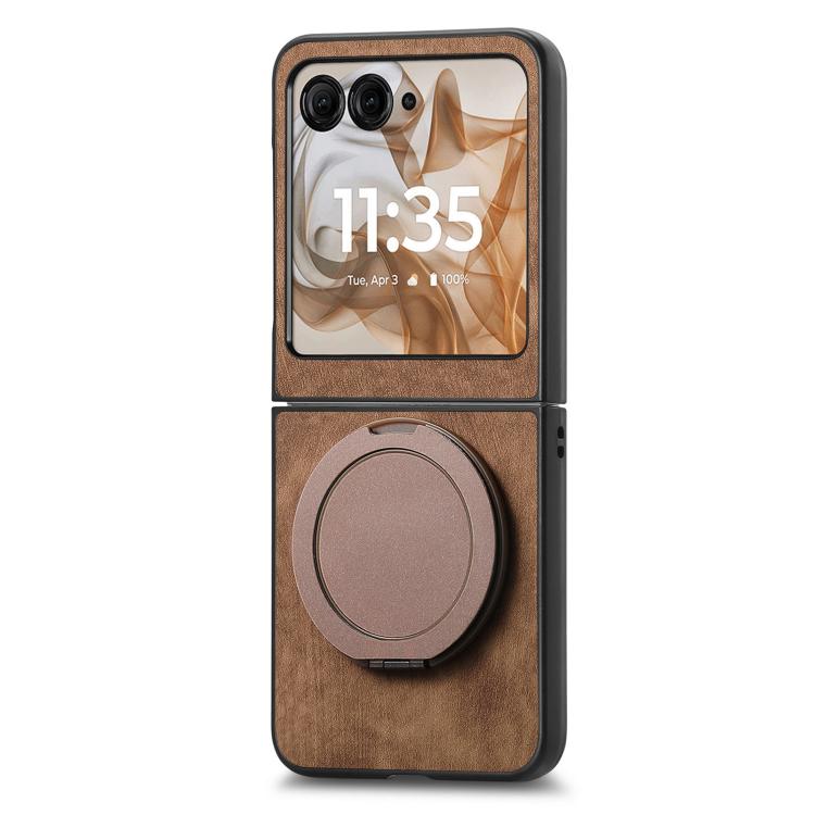 Funda de cuero retro con soporte giratorio redondo para Motorola Moto Razr 60 (marrón)