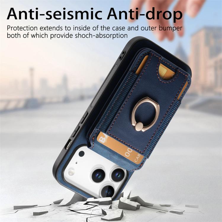 Funda de cuero retro con tarjetero y soporte magnético divisible para iPhone 17 Pro (azul)
