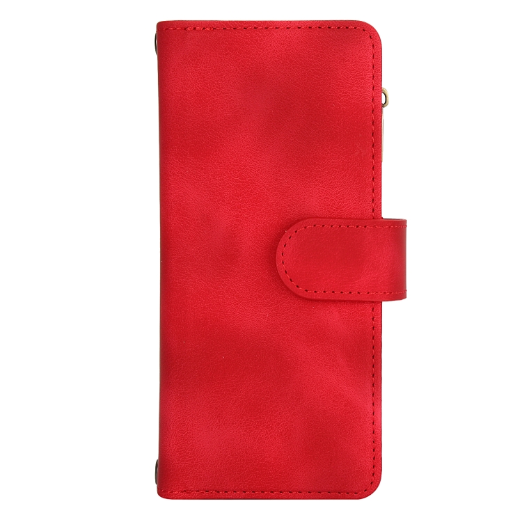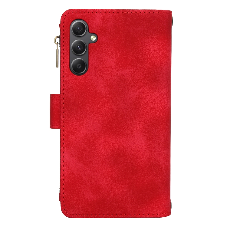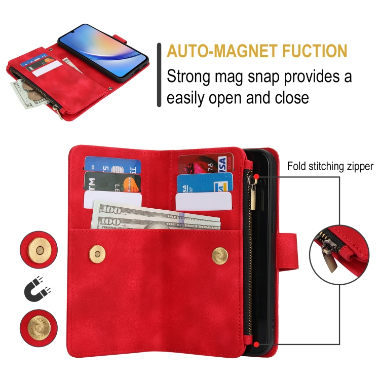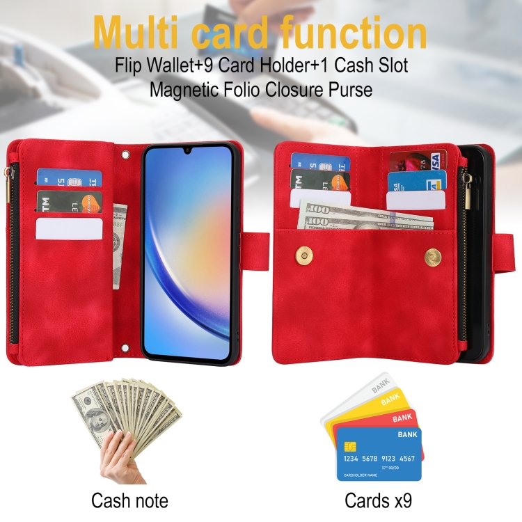 Funda Cuero Rfid con Cremallera para Samsung Galaxy A24 5G Global Dream con 9 Tarjetas y Cordón (Rojo)