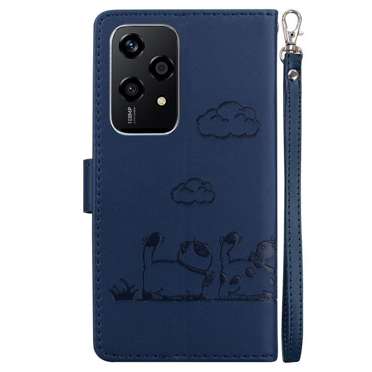 Funda de Cuero Rfid para Honor 200 Lite con Diseño de Gatos (Azul)