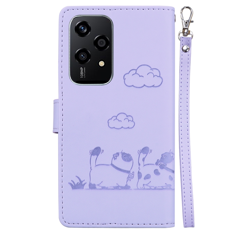 Funda de Cuero Rfid para Honor 200 Lite con Diseño de Gatos (Morado)