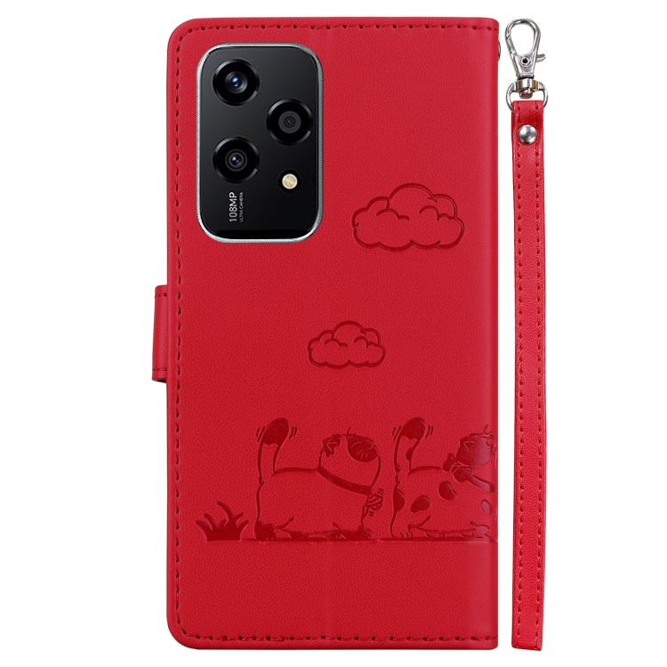 Funda de Cuero Rfid para Honor 200 Lite con Diseño de Gatos (Roja)