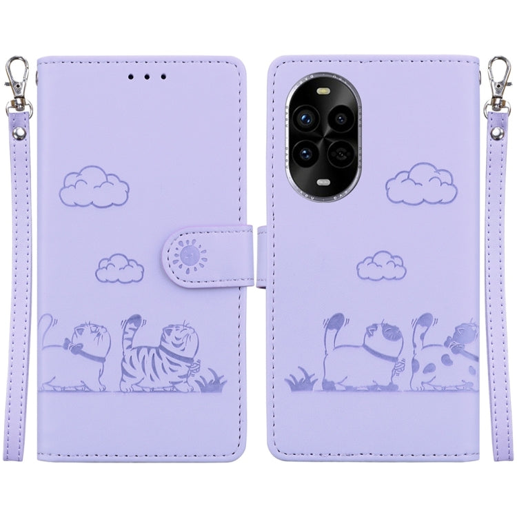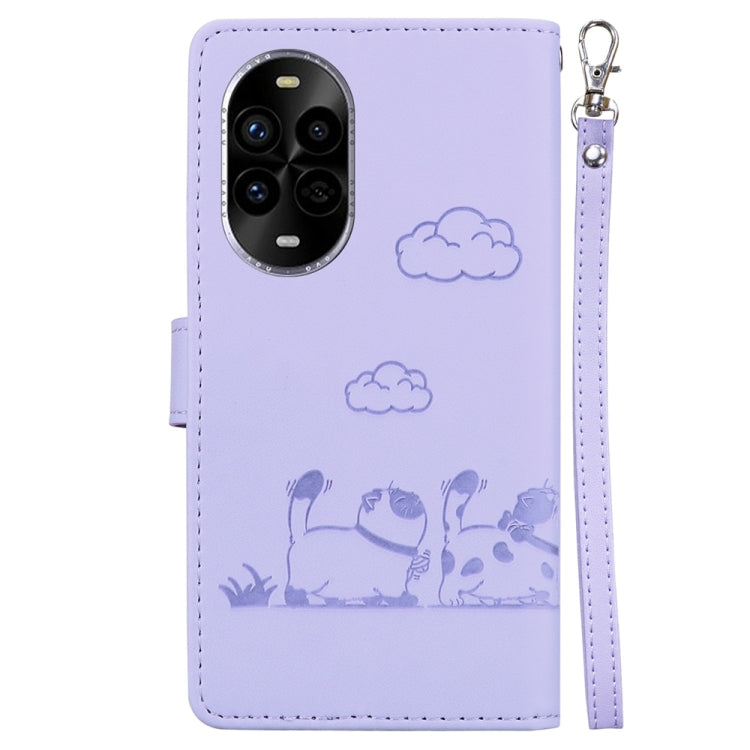 Funda de Cuero Rfid para Huawei Nova 13 Pro con Diseño de Gatos (Morado)