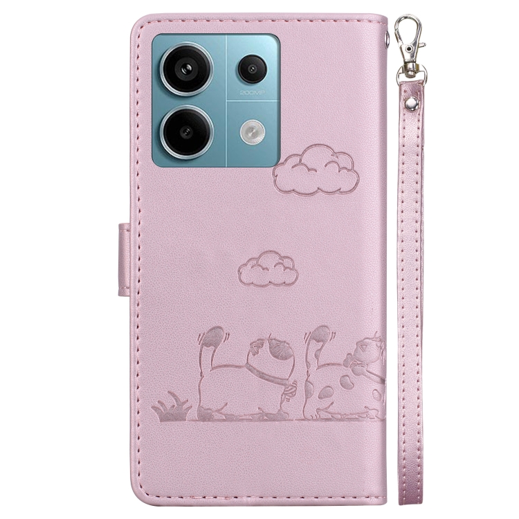Funda de Cuero Rfid con Diseño de Gatos para Redmi Note 13 Pro 5G (Oro Rosa)