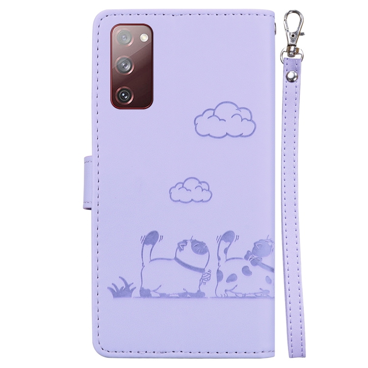 Funda Cuero Rfid Samsung Galaxy S20 FE Diseño Gatos (Morado)