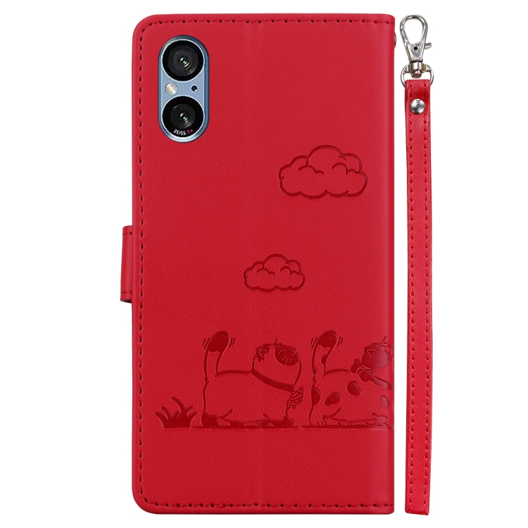 Funda Cuero Rfid Sony Xperia 5 V con Diseño Gatos (Roja)