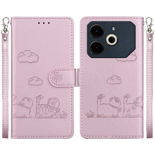 Funda de Cuero Rfid para Tecno Pova 6 Neo con Diseño de Gatos (Oro Rosa)