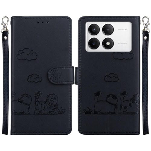 Funda de Cuero Rfid con Diseño de Gatos para Xiaomi Poco F6 Pro (Negra)