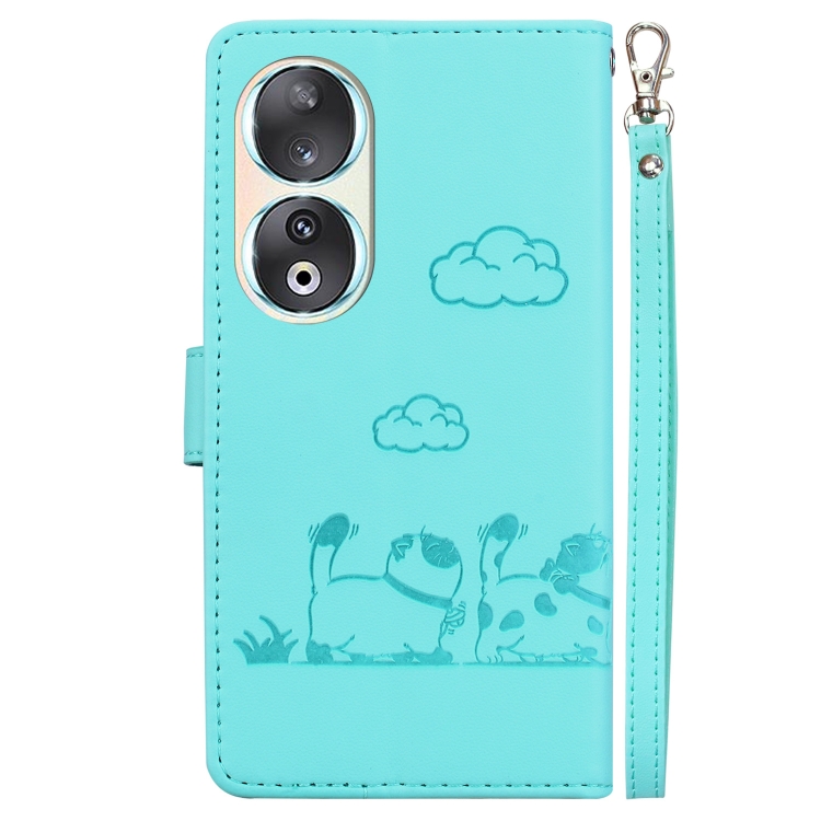 Funda de Cuero Rfid para Honor 90 con Diseño de Gatos (Verde)