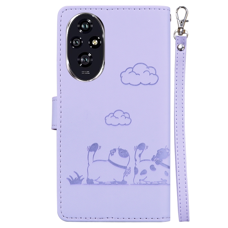 Funda de Cuero Rfid con Diseño de Gatos para Honor 200 5G (Morada)
