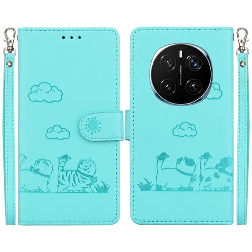 Funda de Cuero Rfid para Honor Magic7 Pro con Diseño de Gatos (Verde)