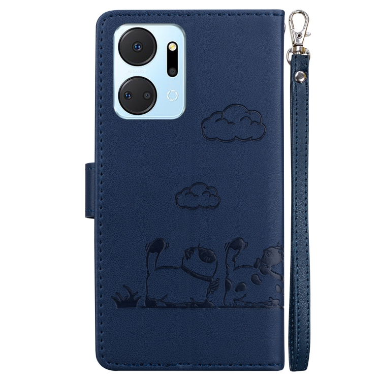 Funda de Cuero Rfid con Diseño de Gatos para Honor X7A (Azul)