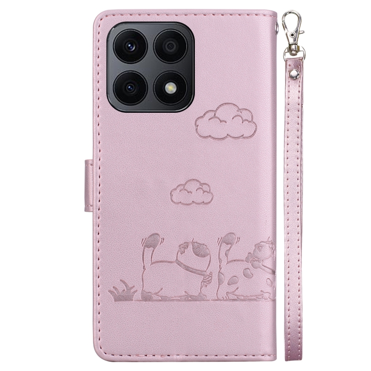 Funda de Cuero Rfid para Honor X8A con Diseño de Gatos (Oro Rosa)