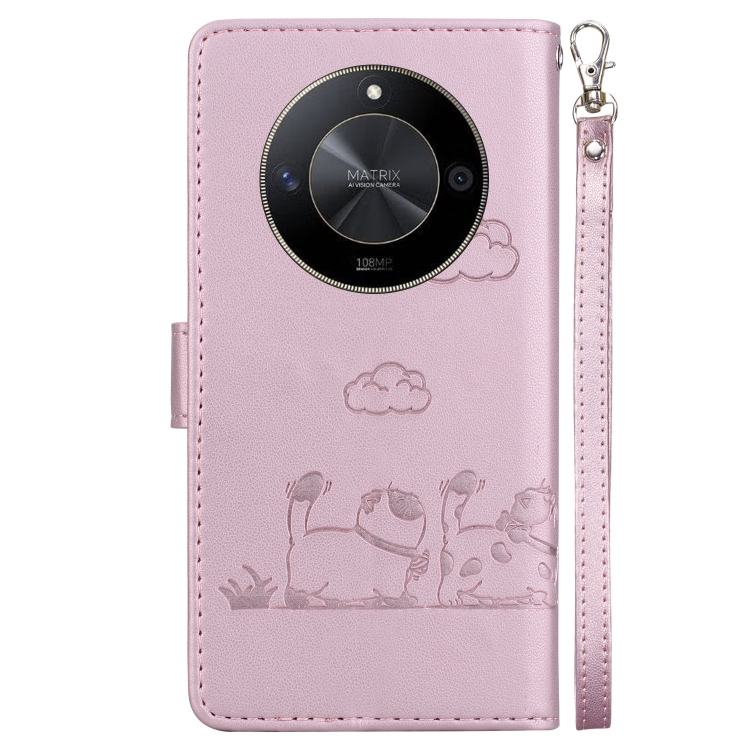 Funda de Cuero Rfid para Honor X9B y Magic6 Lite con Diseño de Gatos (Oro Rosa)