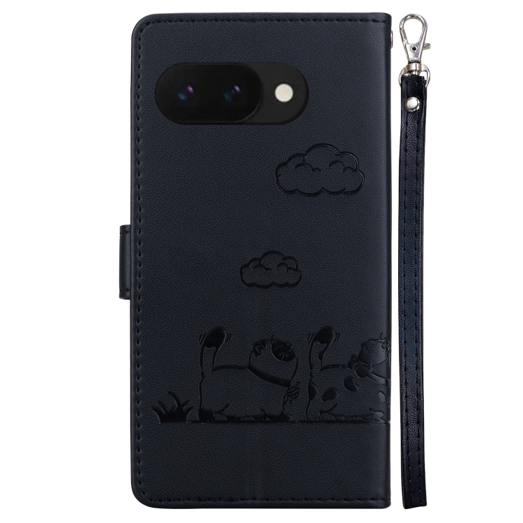 Funda de Cuero Rfid para Google Pixel 9A con Diseño de Gatos (Negra)