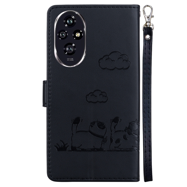 Funda de Cuero Rfid para Honor 200 5G con Diseño de Gatos (Negra)
