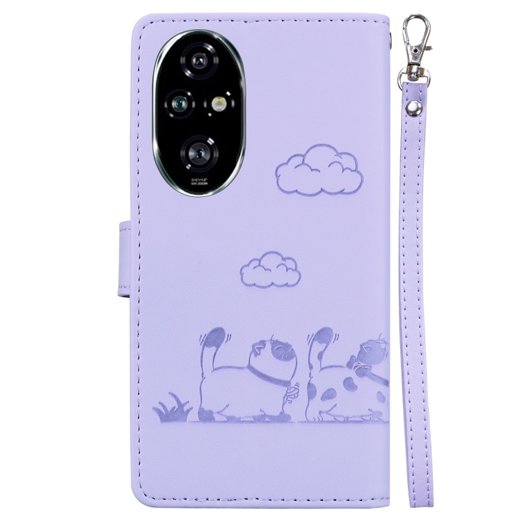 Funda de Cuero Rfid para Honor 200 Pro 5G con Diseño de Gatos (Morada)