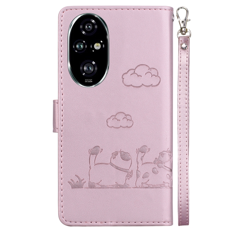 Funda de Cuero Rfid para Honor 200 Pro 5G con Diseño de Gatos (Oro Rosa)